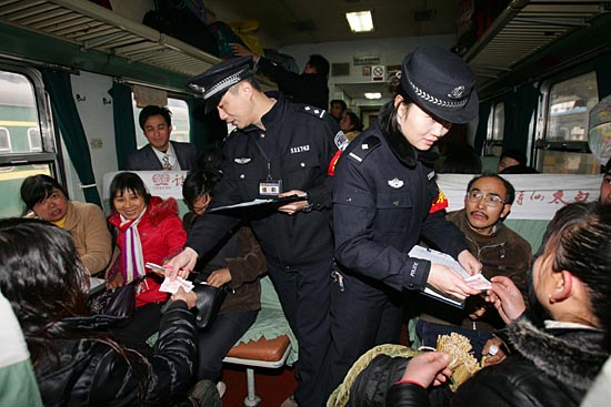 1月21日,重慶鐵路警方正式全面啟動了火車票票源調查行動。當日300多名鐵路警察對5000多名在重慶地區購買火車票的旅客進行票源調查。據了解,通過向旅客調查車票來源,可以為鐵路警方精確打擊“倒票”的違法活動、堵截高價票源提供第一線索,保障春運期間火車票對出行旅客的正常供應。
