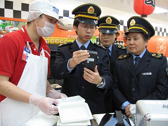 近日,廣西衛生監督部門在南寧市開展“廣西2008衛生執法一號”執法行動。檢查組對餐飲單位、旅游景點、賓館飯店、集貿市場和年貨市場進行了執法檢查。圖為衛生執法人員在一家超市檢測一次性碗筷是否符合衛生標準。