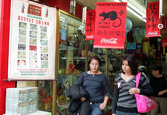 29日,在墨西哥首都墨西哥城的唐人街,兩名女孩從一家售賣中國年貨的店鋪內走出。中國春節臨近,位于墨西哥城的唐人街一派喜慶氣氛。這里的年貨市場開始紅火起來,售賣的大都是中國商品,象征吉祥的“中國結”、中國“喜鼠”等受到許多當地人的喜愛。