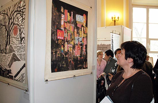 12日,中國深圳都市水墨畫展在華沙市政廳展廳開幕。深圳市文化局、深圳畫院挑選了25幅作品參展,向波蘭觀眾介紹“都市水墨”在當今水墨畫壇的發展趨勢,同時展現了中國傳統水墨畫藝術走向當代的歷程。