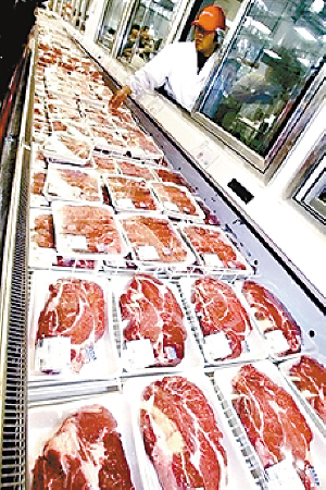 日本一家超市貨架上擺滿了從美國進口的牛肉。資料圖片 | 屠宰場虐待病牛