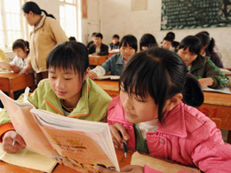 2月25日,廣西河池市南丹縣里湖中學初一年級學生在上英語課。當日是廣西中小學新學期開學第一天,雖然遭受了百年不遇的冰凍災害襲擊,但廣西有關部門在災后迅速開展校舍重建工作,采取多項措施解決學校開學問題,確保災區中小學如期開學。