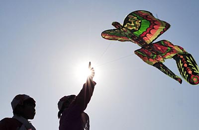隨著近日氣溫升高,人們紛紛來到戶外放飛風箏,享受溫暖陽光。