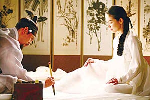 韓國影片《黃真伊》劇照 | 2006年上映的108部韓國國產影片中,最終盈利的只有22部;2007年上映的112部影片中,實現盈利的不到13部。 韓國影壇連續兩年不景氣,國產電影虧損率超過90%。近日,各大電影制作公司紛紛宣布將開始裁員。 近兩年來,韓國國產電影虧損率超過90%,2006年上映的108部韓國國產影片中最終盈利的只有22部;2007年上映的112部影片中實現盈利的不到13部。2007年一部影片的平均制作費從2006年的50億韓元下降到了43億韓元,不過一部影片的平均票房收入卻只有24億韓元,平均收益率為負42%。例如Cinema
