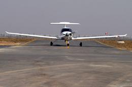 3月25日,一架DA40型飛機在跑道滑行。