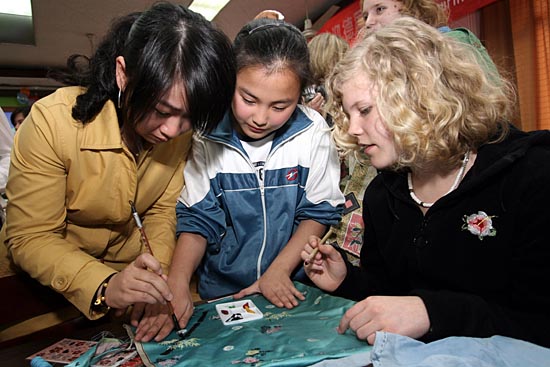 25日,實驗中學的學生與來自德國的朋友一起設計制作個性環保布袋。 當日,德國赫爾茲戈林根·宣布赫高級一級中學的學生到浙江省杭州市浙江傳媒學院實驗中學訪問,中德學生一起動手制作簡易機器人、“可樂瓶火箭”、個性環保袋等,在交流中結下友誼。