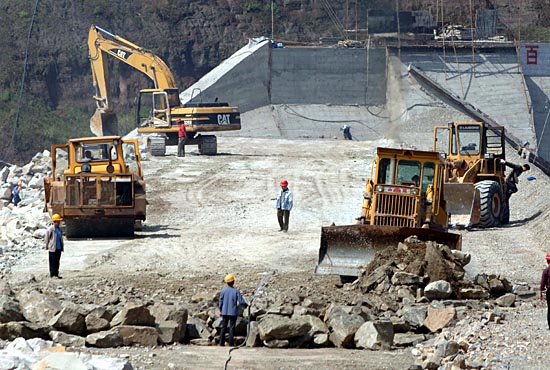 這是大壩壩頂上的施工場面(攝于3月23日)。