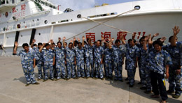 4月21日,首批26名獲救中國漁民離開“南海救111”輪抵達海南三亞。受今年1號臺風“浣熊”影響,約180名中外漁民在西沙遇險。繼4月19日對140余名中外漁民進行救助后,4月20日,交通運輸部救助隊伍繼續全力搜救在臺風中失蹤的40名中外漁民。
