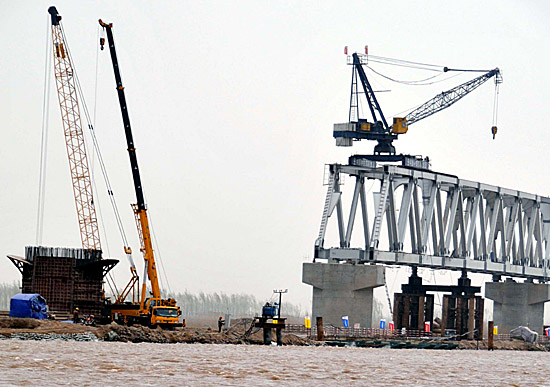 總投資2.61億元的永寧黃河特大橋位于寧夏銀川市黃河上游52公里處,在國內鐵路橋梁設計中是首次采用簡支鋼桁結合梁結構。據悉,這種橋梁設計代表了我國橋梁技術向高強、整體、新結構發展的方向,具有較高的科技含量。