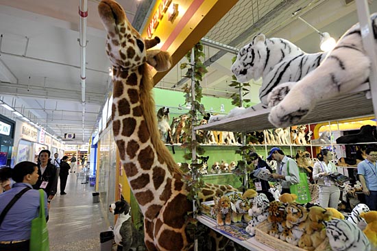 4月28日,在第103屆廣交會上,一家生產大型仿真動物玩具的企業吸引了外商前來洽談。正在舉行的第103屆廣交會上,越來越多的玩具企業在歷盡磨難后開始重新思考自己的定位,從純粹為跨國公司做加工,向重設計、重質量、創品牌的方向發展。玩具行業在重重壓力下謀求“脫胎換骨”。
