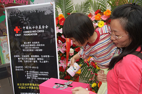 5月17日,韓國姚格貝麗餐飲有限公司同中國紅十字基金會合作,呼吁在北京工作、學習和經商的部分韓國人設立“愛心角”,向災區人民獻愛心。姚格貝麗餐飲有限公司將把5月17日—5月21日其間的銷售額的50%通過中國紅十字基金會捐給四川地震災區。