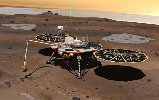 這是美國宇航局提供的“鳳凰”號探測器在火星著陸的效果圖。美國宇航局噴氣推進實驗室25日宣布,美國西部時間25日16時53分(北京時間26日7時53分),美國“鳳凰”號火星著陸探測器成功降落在火星北極附近區域。新華社發