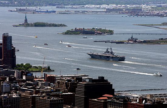 28日,美國海軍兩棲攻擊艦“卡爾薩基”號從紐約哈得孫河口駛離。當日,第21屆紐約艦隊周謝幕,艦隊駛離紐約。本屆艦隊周期間,6萬余人登艦參觀。