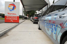 日前,在比利時布魯塞爾附近的賴斯布魯克,汽車在歐洲首個氫能源“加油站”排隊“加油”。氫能源汽車所排尾氣為水蒸氣,不造成任何污染。
