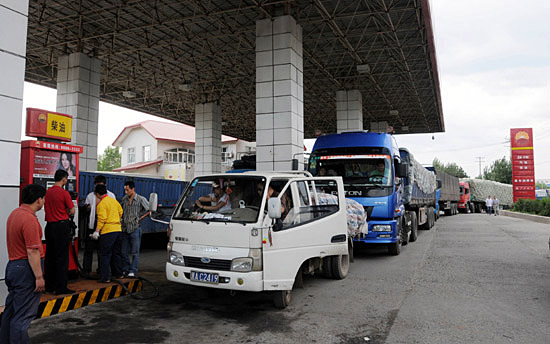6月11日,在哈爾濱學府路上的一處加油站,加柴油的車輛排出了“長龍”。當日,記者走訪哈爾濱一些加油站發現,部分加油站0#柴油斷貨,一些能加柴油的加油站提高了油價,并實行限量銷售。在學府路上的中國石油哈爾濱銷售分公司哈京加油站,加柴油的車輛排起了長隊,一些車輛為加柴油要等上近兩個小時。