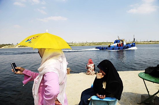 26日,幾名埃及婦女在蘇伊士運河邊的公園內休憩。當日,埃及蘇伊士運河管理局主席法迪勒在慶祝蘇伊士運河國有化52周年的新聞發布會上宣布,蘇伊士運河在2007-2008財政年度的收入超過51億美元,同比增長約2 2%。