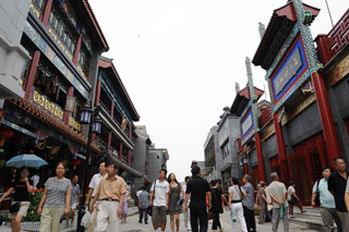 7月30日,游人在北京大柵欄商業街游覽。當日,北京大柵欄商業街完成近年來規模最大的一次修繕改造工程,正式開街迎接八方來客。全長266米的大柵欄商業街是一條有著近500年歷史的古老商業街,街中老字號云集、歷史文化遺存集中,是北京現存的最能體現古都風貌和傳統商業文化底蘊的街區之一。 此次整體改造通過文物修復、保護修繕、風貌整飾、改造整治四類工程,使大柵欄商業街集文化、商業、旅游于一體,成為京城老字號企業匯聚地、特色品牌產品集散地和古都風貌游覽區。 |