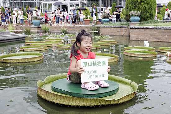 10日,在日本名古屋的東山植物園,一名小女孩坐在一片直徑長達一米的克魯茲王蓮的葉子上。東山植物園每年都會舉辦一次“蓮中坐”的活動,為游客們提供不同尋常的游園體驗。新華社/法新