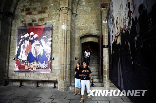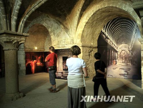 8月9日,游人在法國圣米歇爾山的修道院中觀看攝影展《天地之間:圣米歇爾山和世界各地的圣山》。該攝影展將攝影師讓-米歇爾·紀堯的作品安置在修道院內外展示,使圖片與古跡融為一體。游人置身其中,在游覽古跡的同時也能領略攝影藝術的魅力。該展覽將持續到11月11日。被譽為“西方名勝”的圣米歇爾山位于法國諾曼底和布列塔尼之間,也是法國著名古跡和基督教圣地,1979年被列入《世界遺產目錄》。