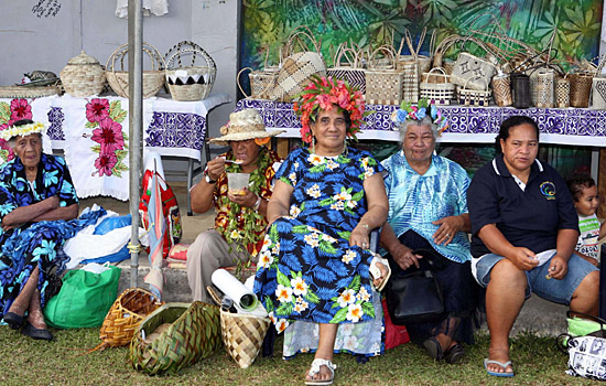 20日,在紐埃首都阿洛菲,當地婦女在氣候變化和農貿展示會上展售手工編織品。當天,為配合第39屆太平洋島國論壇領導人會議,當地舉行了氣候變化和農貿展示會。