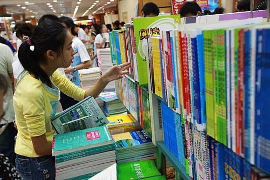 8月31日,一位初中生正在書店內選購英語輔導書。