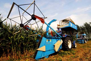 山東鼓勵發展青貯玉米種植。8月29日,大型機械在山東臺兒莊區吳莊村田地里收割青貯玉米。新華社發(高啟民