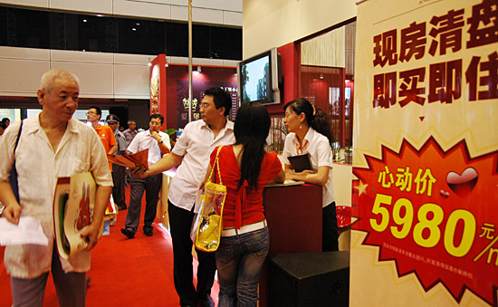 9月7日,一位參觀者被一家房產商推出的誘人低價現房所吸引。