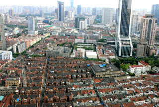 上海中心城區老式住宅小區俯瞰。上海市二手房指數辦公室9月8日公布的數據顯示,2008年8月上海二手房價格指數較7月環比下降11點,跌幅為0.45%,這是上海二手房價格指數近兩年來首次下跌。據悉,剛剛過去的8月,由于上海房市一手房價格的下調,二手房價格壓力明顯增加,降價出售量增多。