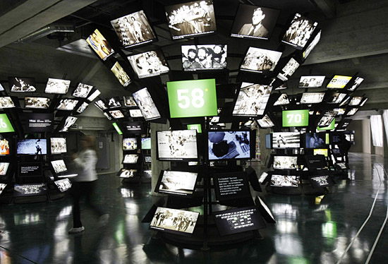 23日,參觀者在巴西足球博物館內觀看展覽。當日,即將于本月29日正式開放的巴西足球博物館向媒體敞開了大門,首個展覽是向“球王”貝利致敬的“貝利事跡展”。