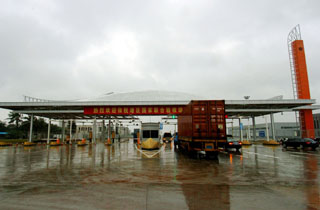 這是海南洋浦保稅港區卡口(10月13日攝)。