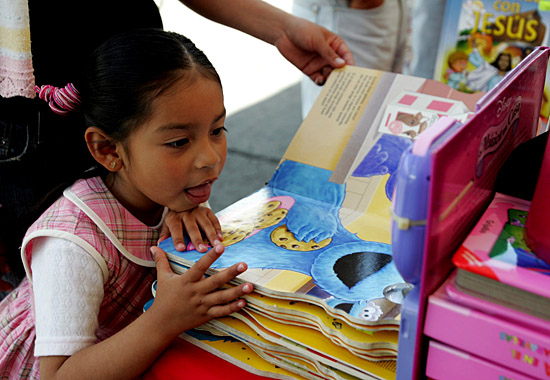 14日,一名女孩在墨西哥首都墨西哥城舉辦的圖書節上選書。為期9天的墨西哥第八屆圖書節在墨西哥城的索卡洛廣場舉行,共有110家出版單位展銷2000多種新圖書,其中一半是兒童出版物。