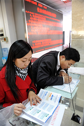 11月20日,兩位市民正在青島市住房公積金管理中心填寫公積金貸款申請表。青島市住房公積金管理中心日前對住房公積金貸款政策進行了一系列調整,調整后,青島市內七區商品房公積金貸款最高限額由30萬元調整為40萬元,二手房公積金貸款最高限額由20萬元調整為25萬元。