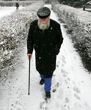22日,一位老人在白俄羅斯首都明斯克的公園內踏雪而行。近日,歐洲中東部地區陸續開始降雪。新華社/法新