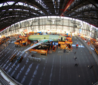 空客(天津)總裝線自今年9月28日正式投產以來,目前已有3架空客A320系列飛機同時進行總裝,并將于2009年1月容納第4架進行總裝。