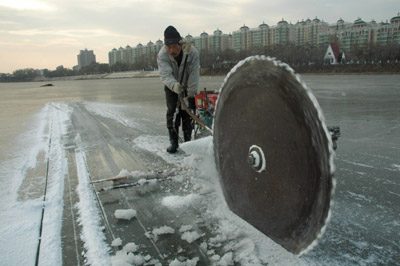 當天是農歷“大雪”節氣,黑龍江省牡丹江市一些采冰團隊開始采冰。據工人介紹,受暖冬影響,今年牡丹江市的采冰工作推遲,距大面積采冰還有一段時日。