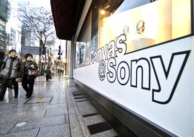 12月9日,行人經過日本東京街頭一家索尼展廳。日本電器巨頭索尼公司日前表示,將在全球范圍內裁減8000個工作崗位并關閉部分工廠,以應對全球經濟的“寒冬”。