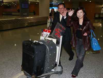 12月15日,抵達乘客向迎接人群揮手致意。