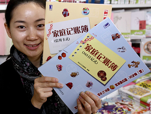 日前,機械工業出版社的一位員工展示該出版社出版發行的中國內地首次出版的《家庭記賬簿》圖書。該書分信用卡式和365日記式兩種,在書中提供各種理財小知識的同時,使使用者詳細記錄每日的錢財收入和支出,幫助家庭和個人更輕松地管理家庭財政,倡導“收入—儲蓄=支出”的理性消費和理財模式,開源節流,提升財源。