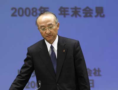 12月22日,在日本名古屋,豐田汽車公司總裁渡邊捷昭出席新聞發布會。渡邊捷昭當日宣布,豐田公司2008財年(至2009年3月)將出現1500億日元的營業虧損。這將是豐田歷史上首次出現營業虧損。