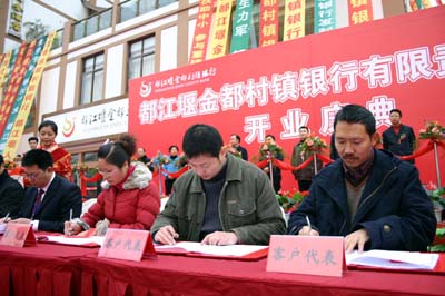 12月29日,都江堰金都村鎮銀行開始營業,這是繼2008年9月彭州民生村鎮銀行開業后,四川重災區又一家開業的村鎮銀行。都江堰金都村鎮銀行由攀枝花市商業銀行作為主發起人,與都江堰市人民政府及十家優秀企業共同出資設立,注冊資本金8000萬元。