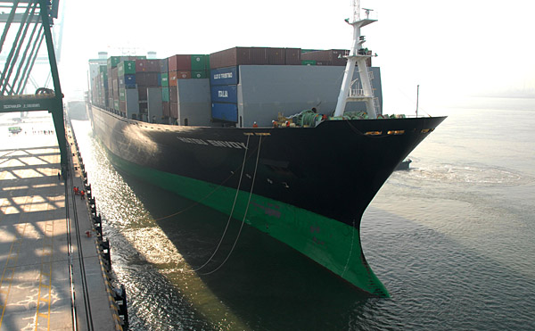 1月2日,臺灣長榮海運公司旗下的“榮欽輪”駛進天津東疆保稅港區。當日,長榮海運公司調整遠東/美西航線,加靠天津港,首班船“榮欽輪”到達天津,該航線共投入5艘最大載箱量5000至6000標準箱的船舶,每周一班,沿線靠港順序為:天津─上海─寧波─青島─洛杉磯─奧克蘭─天津。