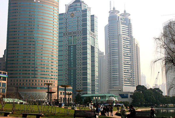 這是上海浦東陸家嘴金融貿易區寫字樓一景。高力國際1月15日發布的上海寫字樓報告顯示,2008年第四季度,上海甲級寫字樓的平均租金為每天8.1元/平方米,較上季度大幅下調21.6%,完全抵消了2008年前三季度的漲幅,租金水平回到2007年。
