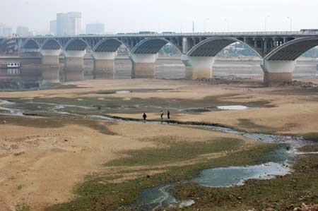 2月9日,湘江長沙段水位下降到25.38米。據長沙水文站工作人員介紹,近段時間持續少雨天氣,導致湘江長沙段大片河灘裸露,航道變窄。
