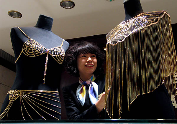 3月10日,濟南一家金店展出用18K黃金打造的披肩和內衣。