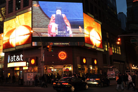 16日晚,美國紐約曼哈頓時報廣場的巨幅電子屏幕播放了中國國家大劇院創作的大型新編史詩京劇《赤壁》。在長達45分鐘的時間里,成千上萬的美國民眾和各國游客在這個被稱為“世界的十字路口”的地標性地帶,通過電子媒介近距離感受了中華文化的無窮魅力。此舉是在全世界傳播中國文化形式上一次大膽而成功的嘗試。 一名自稱“馬克·吐溫老鄉”的美國人頗有感觸地說:“源遠流長的中華文化對中國走向強盛形成了一個強大支撐。我從《赤壁》這出戲中發現,中國人早在2000多年前就在政治、軍事和外交等方面表現出了極高的智慧! 《赤壁》的藝術魅力和現場氣氛也感染了美國哥倫比亞藝術家音樂公司董事長胡安·雅克·塞斯勃隆。他說:“我相信世界上大多數人看不懂京劇,但在時報廣場這個地方,在世界需要中國、熱議中國的時候上演的這場獨一無二的中國文化展示活動,會給每一個見證者留下不可磨滅的印象! |