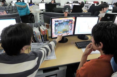 金融危機為文化產業開啟了一扇門。3月12日,處于中國網絡游戲開發運營領先位置的福州網龍公司的研發人員在游戲測試中。新華社記者:姜克紅