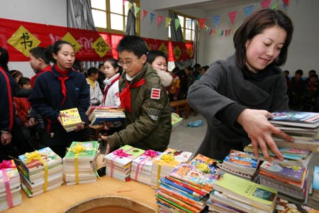 援建農民工子弟學校圖書室。3月5日,浙江省舟山市南海實驗學校的同學將圖書送到定海區長峙陽光學校。
