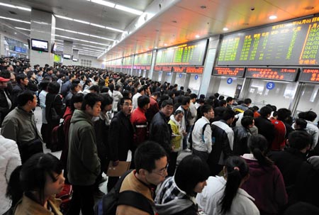 4月2日,大量旅客在南京火車站售票廳排隊購票。隨著清明節假期的臨近,南京火車站購票旅客開始增多,車站各售票窗口前均排起長隊,部分旅客為避開假期客流高峰而提前出行。