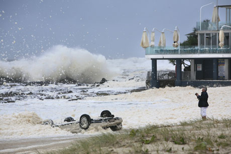 21日,在澳大利亞昆士蘭州的黃金海岸,一名當地人用相機拍攝被風浪掀翻的汽車。據法新社報道,澳大利亞東北部沿海地區當日遭暴風雨襲擊,導致數萬家庭停電,數百所學校被迫關閉。