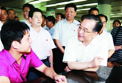 12日,溫家寶在湖南省株洲市人力資源市場進行調研。